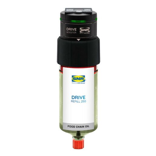 DRIVE Booster, a high-performance and environmentally friendly automatic single-point lubrication system, is designed for applications requiring highly accurate grease distribution. The FOOD CHAIN OIL version is an edible chain oil for the food and pharmaceutical industries. It complies with NSF-H1* recommendations. It offers good protection against wear and corrosion, as well as good resistance to seizing. Its capacity is 250cm³.